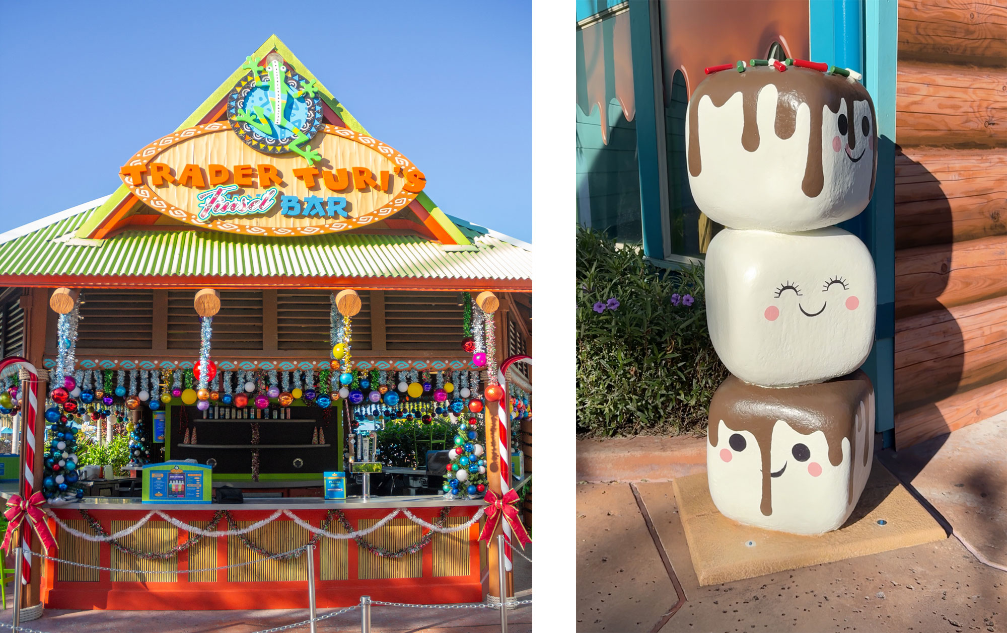 These lanyards work for food, drinks and even the s’mores package (I was happy to hear that). Some bars and foodie areas are next to experiences, such as the Santa meet and greet or the upcharge mini Serengeti Express train ride. So, you can stop, grab a seat, get a snack, do an experience and then continue on.
