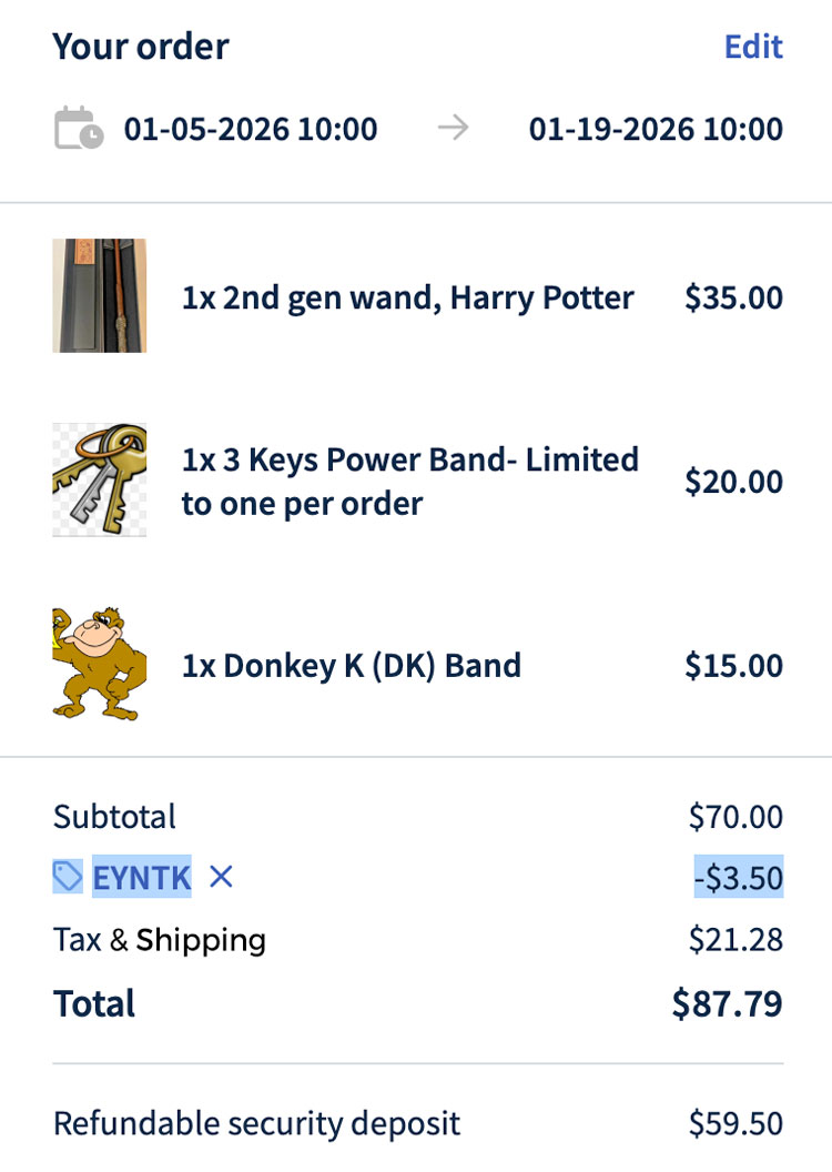 Make sure to add that into the Coupon Code section before you check out for an additional 5% off of your purchase. Renting these Wands and Power-Up Bands will already save you about 50% off of the price of buying these outright and some of them are pre-loaded with the Keys to the Bowser Jr. experience.