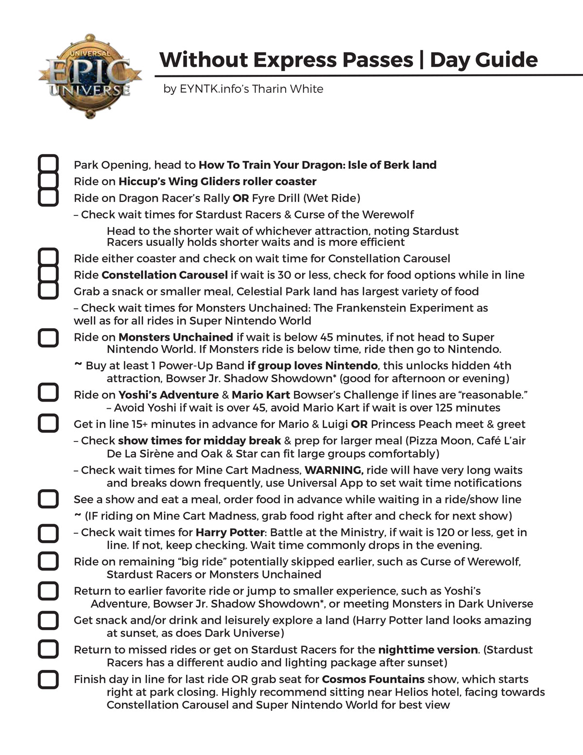 The EYNTK.info Epic Universe Day Planner – without Express Passes