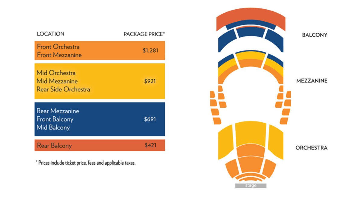 Starting at $421, you can guarantee a seat to eight broadway shows. Outside of those who stalk the Broadway Lottery websites for the New York City productions, this is hard to beat. And, for those who want the best seats in the house, package prices not only include prime viewing, but also, “complimentary parking for subscription shows.“
