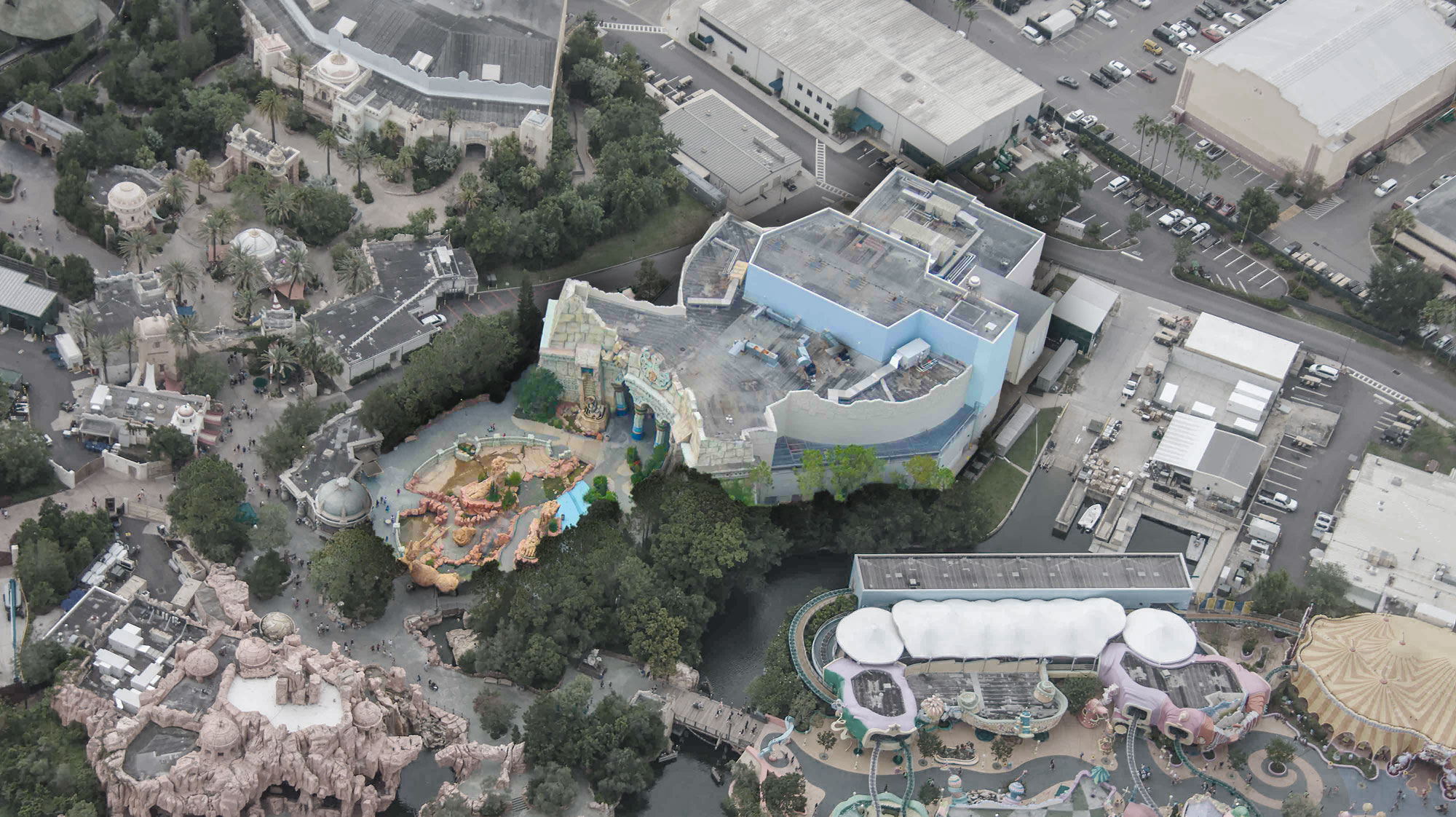 In this photo by Bioreconstruct on X, you can see just how large this theater and its outdoor queue was. Even though the show has since been shut down you can still awe at the gargantuan facade built for this former attraction. This leaves a lot of room for the future. And it establishes a flow that could be re-worked into Pokémon.