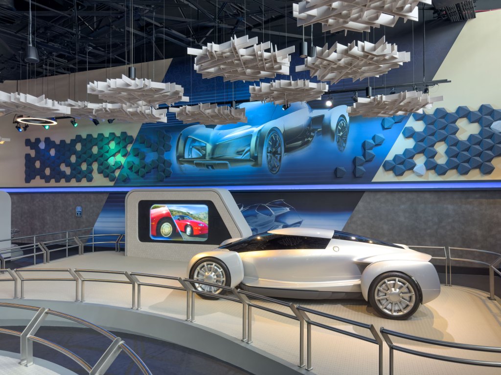 The attraction’s queue begins with a look at how we used to think of automobile design and moves forward to what we think of today. In the very first room is a window, looking into the ride track where we can see vehicles moving by. This adds immediate excitement and energy to the room. Yes, you can hear the vehicles whooshing by as you enter, but seeing the vehicles isn’t always possible. For many, this could be a first look at what’s to come.