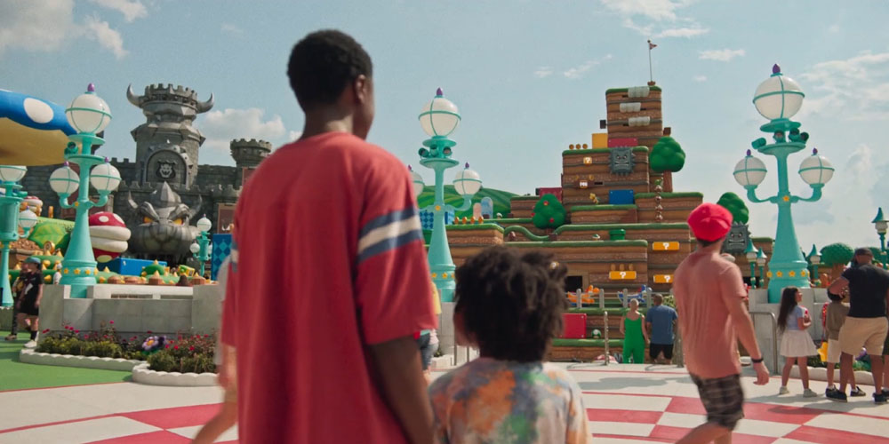 Next you get hit with the iconic Universal Orlando Resort visuals, plus a new one. The visual of kids running to the window to see Volcano Bay has been used almost non-stop since Volcano Bay opened a decade ago. The visual of the globe and Hogwarts Castle is another recognizable visual. But, something new for the general public, the world-famous Super Nintendo World.