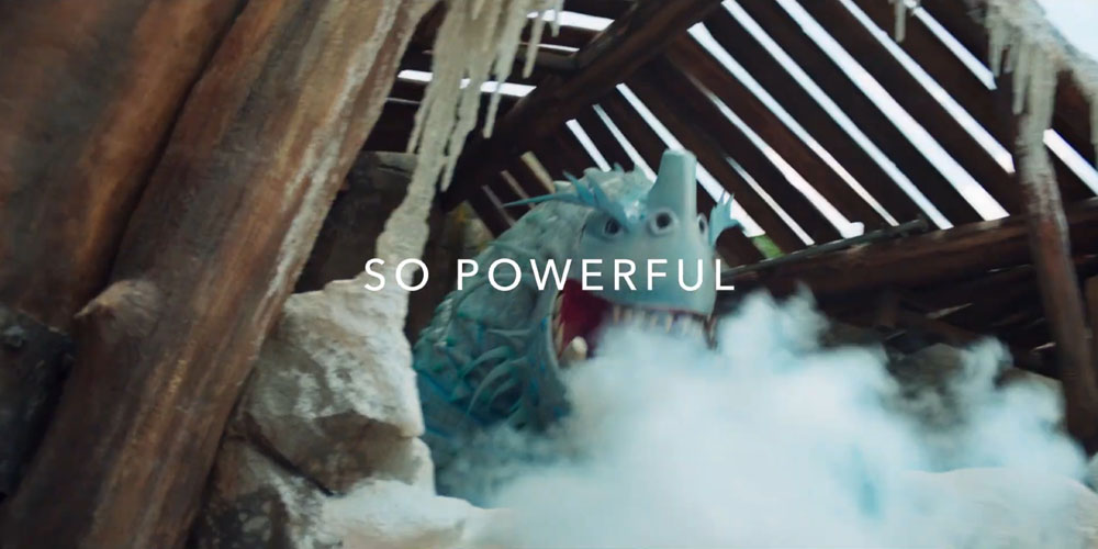 Now the commercial takes on some energy, having dragons and dinosaurs jump in your face. You can see excitement, fear and lots of kinetic energy. It is important to note, Universal has never been afraid to add scary elements to their parks. Being scared and overcoming that fear is an essential part of not only this commercial, but many, many of their films.