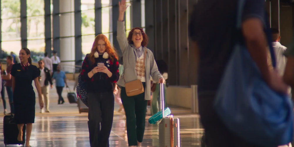 Next we see a family, meeting up. The family appears to be coming from separate areas of an airport. Is this a separated family looking to reconnect perhaps? Each child is the mini version of their parent. The kids are lost in their technology as the parents fight crowds to reconnect. Mom quite literally pulls her daughter out of the digital world to bring the family together.
